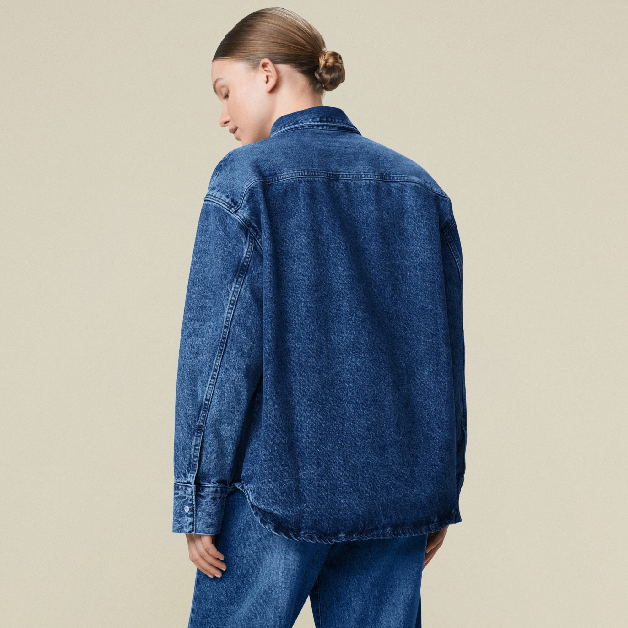 Mia er vår western-inspirerte klassiske blå denimskjorte.
