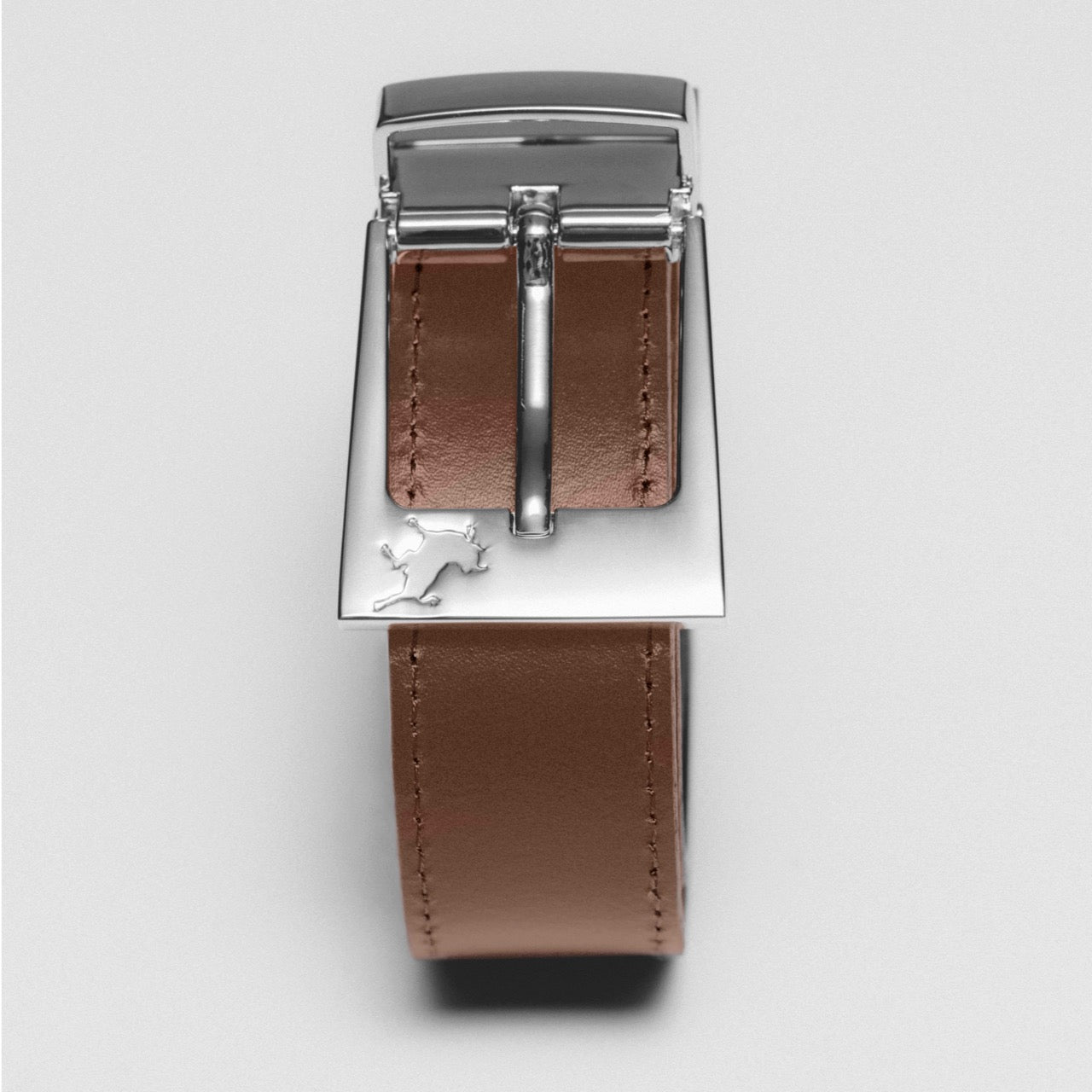 - Silver buckle with bull debossing